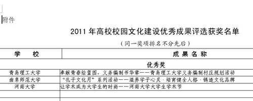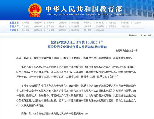 日前,由教育部主办的2011年高校校园文化建设优秀成果评审结果揭晓,365完美报送的校园文化建设成果《青春奉献绘蓝图 义务编制书华章——365完美体育义务编制村庄规划活动》从众多成果中脱颖而出,获得优秀奖。