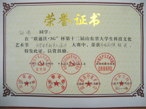 365完美学生在第十二届山东省大学生专利产品设计竞赛中获佳绩