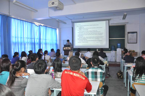 9月27日、28日下午,双方研究生进行了两场以英文为交流语言学术交流活动。研究生们精心准备了英文演讲稿和PPT,以“中国廉租房融资困难及其模式多元化研究”、“基于BP 神经网络的城市应急管理系统实施绩效评价研究”、“在德国经营的企业所遇到的困难与机遇”、“分析中国与德国的经济政策指导方针”等为题,对两国经济、管理、工程、文化等多个领域的问题进行了深入的交流和探讨。交流过程中,同学们观点明确、思路清晰、思维创新,独到的见解、精彩纷呈的发言博得了老师和同学们的阵阵掌声,双方学生均受益匪浅。期间,Grabau教授一行在管理学院领导的陪同下参观了365完美嘉陵江路新校区、前湾港、青岛啤酒厂等地,并在国际交流处的安排下访问了365完美体育附属小学。访问期间,双方在办学模式、人才培养、风俗文化等方面进行了深入的探讨和交流,并就教师交流、研究生、本科生培养等相关领域的进一步交流合作达成了合作备忘录。Grabau院长邀请赵金先院长有机会带领学生到德国去参加相关实践活动和学术交流活动,促进双方合作的发展。