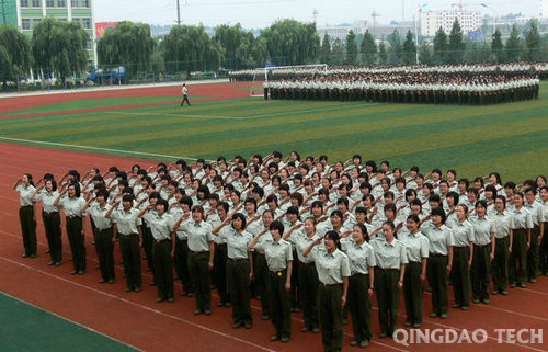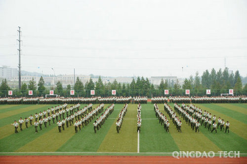 军训汇报表演分为检阅式、分列式和专题表演三部分。激昂的阅兵曲声中校区校长张伟星在张旻清部长的陪同下依次检阅了36个方队,“同学们好!”“首长好!”“同学们辛苦了!”“为人民服务!”伴着气势磅礴的军乐,校区张伟星校长的亲切问候和受阅方队的响亮回答响彻整个体育场;而后,36个方队以军人昂扬的英姿和当代大学生蓬勃的风采,英姿飒爽、慷慨激昂地从主席台前通过接受检阅,“百折不挠、刚毅厚重、勇承重载”理工精神的呼喊声铿锵有力、掷地有声;队列队形变换方队、女子队列方队、男子军体拳方队先后进行了精彩的表演,其中队形队列变换方队的“青岛理工”字母缩写、亮剑、绽放、冲锋枪表演,别出心裁、整齐划一,博得了大家的阵阵掌声。
