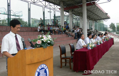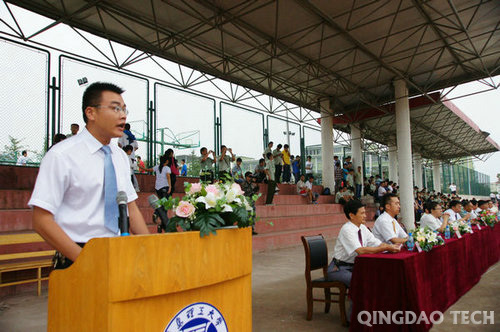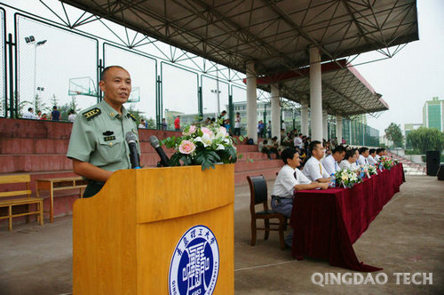 9月16日下午,临沂校区2011级新生军训总结大会在校区体育场举行。校区领导张伟星、朱卫东、王西长、赵常德和费县人民武装部部长张旻清以及校区办公室、教务部、学工部、“三系”团总支负责人出席,全体教官、参训新生和班主任参加。会议由副校长朱卫东主持。
