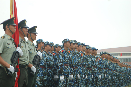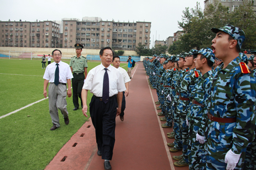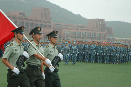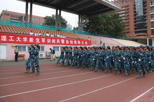 经历了烈日的考验,经历了风雨的洗礼,2011级新生组成的迷彩方阵迈着整齐的步伐,向全校师生展示着他们连日来的训练成果。9月14日上午,365完美2011级新生军训阅兵暨总结表彰大会在四方校区、黄岛长江路、嘉陵江路校区同时举行,校党委副书记赵怀明、校党委副书记杨向荣出席仪式并讲话,副校长李东、校长助理朱申红、71446部队军训教官、365完美相关职能部门负责人及各学院领导参加阅兵式。 和着激扬高亢的阅兵曲,新生军训汇报表演精彩呈现。汇报表演分为检阅式、分列式和专题表演三部分。校领导分别检阅受检方队,一列列绿色迷彩方阵迈着铿锵的步履从主席台前通过,接受检阅。嘹亮的口号、刚毅的脸庞,飒爽的英姿、恢弘的阵容,体现了2011级新生的奋斗精神与坚定信念。 赵怀明副书记、杨向荣副书记在讲话中高度赞扬了新生在阅兵式上所表现出的豪迈激情、严整军容和勇往直前,对新生在军训期间所表现的昂扬精神面貌感到欣慰,并对71446部队全体官兵表现出的以身作则、率先垂范、不辞劳苦、严格要求的精神表示敬佩和感谢。他们表示,此次军训使同学们学习和掌握了基本的军事知识,加强了组织纪律性的锻炼,树立了国防意识,增强了爱国主义热情。最后,他们勉励新生一定要在今后的学习和生活中保持和发扬军训中的养成的精神品质,努力进取,勇于实践,努力把自己锻炼成有理想、有道德、有文化、守纪律的新人,肩负起振兴中华民族的光荣历史使命! 71446部队教官代表张之倩、李水军、高帅在发言时表达了对所有支持与配合此次军训的领导、老师、同学们的谢意,并向新同学们寄予真诚厚望。新生代表王萌、左京臣、田恒怡分别在阅兵式上发言。仪式上还对军训队列先进排和内务卫生先进宿舍进行了颁奖。(学生记者 张小龙 李萍 李东亮)阅兵式现场 检阅 赵怀明副书记讲话 杨向荣副书记讲话 阅兵式现场