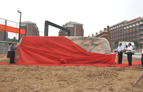 9月9日,在第27个教师节即将来临之际,安徽校友会和湖北校友会的校友代表们特意赶来,齐聚母校,为母校献上节日礼物—灵璧五彩石(长8米,高2.4米,重约35吨)和纪念树款,感恩母校,真情回馈。校党委书记耿喜华代表学校接受捐赠、向安徽校友会和湖北校友会颁发捐赠证书。仪式由校党委副书记赵怀明主持,耿喜华书记和安徽校友会名誉会长程永平、顾问薛彦善共同为灵璧石揭幕。校党委副书记杨向荣、刘龙海,副校长李东、校长助理朱申红及党办校办、黄岛校区办、新校区建设指挥部、校董校友办等部门负责人出席仪式。