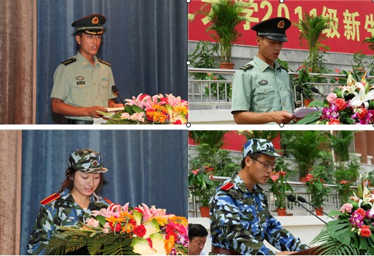 武装部部长王国庆、团委副书记焦红良宣布军训编制情况,71446部队军训教官代表、新生代表先后发言。(学生记者 张小龙 王莉禅)
