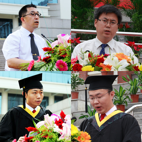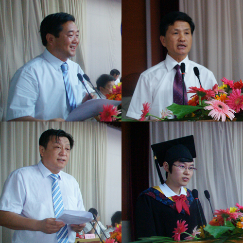 毕业生代表环境学院给排水专业07级4班乔中、自动化学院自动化专业07级9班姜鹏、临沂校区工程管理系刘璐在发言中表达了对母校、老师、同学的感激和眷恋之情,表示将在即将开始的崭新生活中,勤奋刻苦、坚持不懈、与时俱进、自立自强,充分继承并发扬“百折不挠、刚毅厚重、勇承重载”的理工精神传统,用自己的多年来积累的知识和技能,服务社会,回报母校,为母校的蓬勃发展奉献一份热情,为祖国的繁荣富强贡献一份力量。