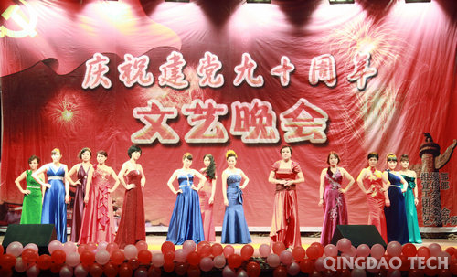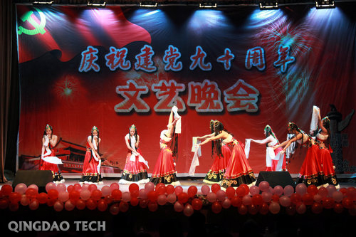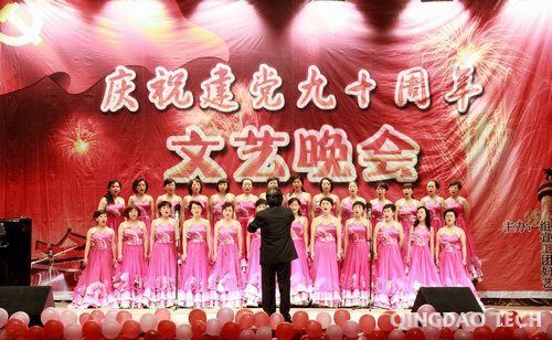 “一颗枣儿一颗心,心心向着共产党。”晚会在土木学院教工合唱《大红枣儿送亲人》、《葡萄园夜色》中拉开帷幕。男声四重唱《游击队歌》、合唱《映山红》等豪情激越、旋律悠扬,再现了战火纷飞的年代,老一辈共产党人为了中国解放、人民幸福浴血奋战的革命史诗。由音乐专业学生带来的笛子独奏《牧民新歌》浓郁清新、活泼跳动,古筝独奏《将军令》跌宕起伏、气势磅礴,舞蹈《天路》极具民族特色洋溢喜悦心情。独唱《江山》、《红旗颂》情深意远、催人奋进,生动展现了党为人民谋幸福送温暖、人民与党梦相依情相系的动人情怀。配乐诗朗诵《时代的回声》激情澎湃地表达了当代大学生对祖国、对党、对青岛的深切热爱以及对中国伟大复兴的自豪与期盼。由学校女教职工演出的时装表演朝气蓬勃、活力四射,展现了女教职工热爱生活、奋发向上的精神风貌。文艺晚会在全体演员合唱《难忘今宵》中落下帷幕。整个演出过程,掌声如潮,喝彩连连。
