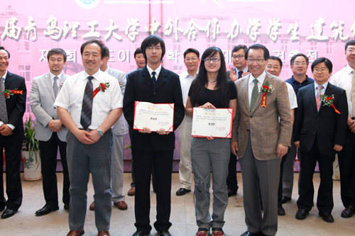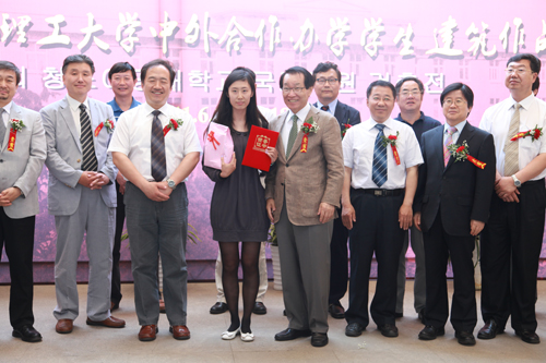 开幕式上,仪垂杰校长与金基永校长共同为获得此次建筑设计展特等奖、优秀奖的同学颁奖,其中,中外合作办学建筑学项目06级2班的于跃洋获得特等奖, 06级1班的罗然和庄媛媛同学获得优秀奖。