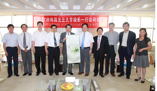 作品展开幕式前一天,校长仪垂杰会见了韩国光云大学校长金基永和教授代表团一行。仪垂杰校长热情欢迎代表团的来访,希望中韩合作办学建筑学项目能结出更加丰硕的成果。金基永校长表示中韩合作项目已经成为光云大学对外合作办学的典范,将积极推动项目的深化和拓展。双方还就国际化办学的理念、国际合作办学的现状等议题进行了交流。校长助理张伟星及教务处、国际交流与合作处、国际学院、建筑学院负责人参加了会谈。
