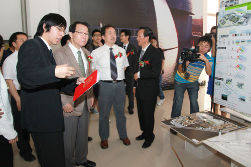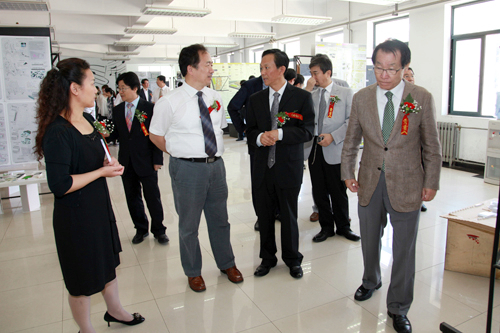颁奖结束后,仪垂杰校长同金基永校长为本次开幕式剪彩,并和教授们一同参观了学生的设计作品。