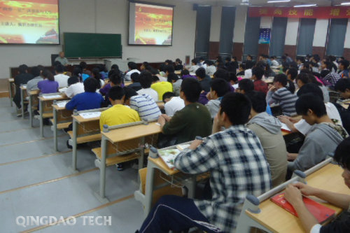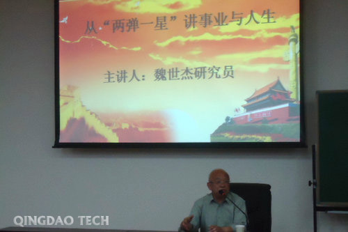 5月24日下午,校团委邀请青岛经济开发区作家协会名誉主席、副研究员魏世杰先生来到嘉陵江路校区,在主教二楼圆形会议厅举办了“从‘两弹一星’谈事业与人生”报告会。校团委副书记焦红良主持报告会,300余名学生代表听取了报告。
