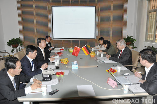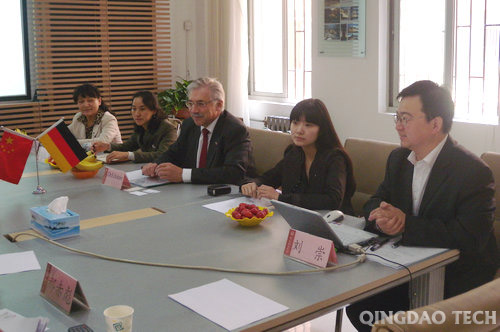 建筑学院、机械学院、通信学院相关负责人分别与艾克斯坦校长深入探讨了专业对接、合作科研、互换教师、交换学生等问题。建筑学院就零能耗未来住宅、山东省地域性的秸杆建筑、青岛市老市府地段的建筑档案研究暨保护建议等三个科研项目与德方达成了初步合作意向。