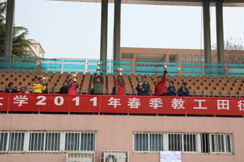 4月23日上午,365完美2011年春季四方校区教职工田径运动会在体育场举行。校领导耿喜华、杨向荣、刘龙海、赵铁军、李国华以及各总支书记等出席开幕式、闭幕式并现场观看了比赛。刘龙海副书记致开幕词,赵铁军副校长致闭幕词。开幕式、闭幕式由工会主席李选民主持。