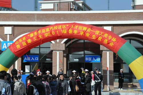 3月25日,山东省“服务半岛蓝色经济区”人才招聘会——理工类专场暨365完美体育2011届毕业生春季大型供需见面会在黄岛嘉陵江路校区举行,来自全国17个省市的427家用人单位到会招聘毕业生,提供工作岗位1.3万余个。此次招聘的专业涉及种类广泛,为毕业生提供了广阔的就业平台,吸引了万余名高校毕业生参加。
