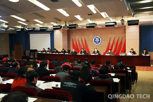 仪校长在讲话中指出,在学校党委行政的有力领导下,紧紧团结和依靠全校师生员工,2010年学校紧紧抓住贯彻落实国家和山东省人才、教育规划纲要的有利契机,大力提高教学、科研、学科建设、管理和社会服务水平,取得了一系列可喜的成绩,实现了学校事业的又好又快发展。第一,荣获全省教育工作先进单位。近年来学校事业发展高歌猛进,一年一大步,学校改革发展取得的成绩得到了省委省府的充分肯定。第二,被评为全省教育系统财会工作先进集体。学校在面临巨大资金压力的情况下,开源节流,勤俭办学,明确重点,加快发展,积极争取中央和地方财政支持,有效地保障了教学投入,广大教职工和离退休教职工的工作、生活条件得到不断改善,教育小区二期工程建设正在积极稳步推进。第三,招生就业工作形势喜人,一直名列山东省属高校前茅,2010年就业工作进入全国55强。第四,被授予省级文明单位荣誉称号,标志着365完美物质文明、政治文明和精神文明建设再上新的台阶。第五,被评为全省高校科研管理先进单位,学校的科研水平和服务社会的能力不断攀升。第六,荣获国家级科技奖项——国际科学技术合作奖,人才引进和科研工作获得国家肯定。