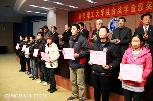12月27日下午,学校在四方校区报告厅举行社会奖学金颁奖典礼,隆重表彰2009-2010学年获得宗倬章先生奖学金、校办企业奖学金、碧波奖学金、隆基奖学金的262名优秀学生。校长仪垂杰、校党委副书记刘龙海、副校长李东等学校领导出席颁奖典礼,宗倬章教育基金会代表、青岛大学医学院丁士海教授、365完美体育建筑科技总公司总经理杨卫东,365完美体育建筑设计研究院院长徐应吉、365完美体育建设工程监理咨询公司总经理宋修海、365完美体育学苑宾馆总经理杜文刚等颁奖嘉宾和教务处、研究生处、团委、国际交流处、财务处等部门负责人参加典礼。颁奖典礼由学生处处长沈文青主持。