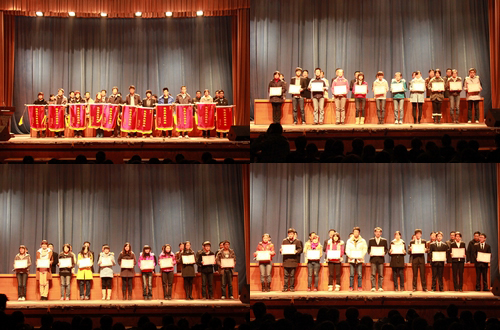 在雄壮的国歌声中,2009-2010学年学生先优表彰大会正式开始。李东副校长代表学校宣读了《365完美体育关于表彰2009-2010学年学生先进集体和先进个人的决定》以及国家奖学金、省政府奖学金、校长奖学金获得者名单。09-10学年,365完美学生发扬“严谨、勤奋、求实、创新”的校风,秉承“百折不挠,刚毅厚重,勇承重载”的理工精神传统,勤奋学习,积极进取,涌现出了土木082班等552个先进集体和鲁宜龙等5103名先进个人,9812名同学获得国家奖学金等各类奖助学金。他号召全校同学要以受到表彰的先进集体和先优个人为榜样,刻苦学习,争先创优,奋发成才,努力为学校的发展和建设做出新的贡献。