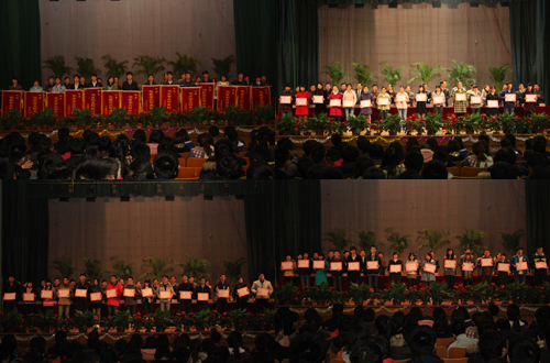 两校区全体学生工作干部和2009—2010学年学生先进集体、先进个人、国家奖学金、省政府奖学金、校长奖学金获得者及各学院学生代表,共2300多人参加了表彰大会。