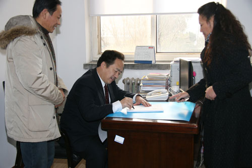 座谈会结束后,仪校长欣然为中韩合作办学项目题写了“春华秋实,果满枝”,并与韩国教师、国际学院院长孙玉洁、建筑学院常务副院长郝赤彪、国际学院副院长辛益军一起观摩了中韩合作办学建筑学专业学生作品。