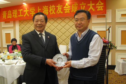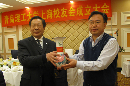 赵怀明副书记代表学校向上海校友会授牌并赠送了印有学校历史建筑物的精美铜盘;上海校友会也向母校赠送了上海世博藏品——盛世繁华瓶(釉下五彩),祝愿母校各项事业蒸蒸日上、蓬勃发展、再创辉煌。