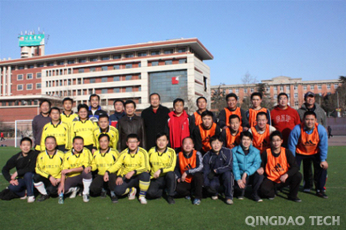 比赛之前,校工会主席李选民讲话,对附中教工足球队的到来表示热烈欢迎,希望两队以球为媒,以球会友,互相交流,共同提高。工会主席李选民、附中滕伟亮校长、体育教学部主任宋刚与两队队员合影留念,李选民为比赛开球,臧开华担任本场比赛主裁。