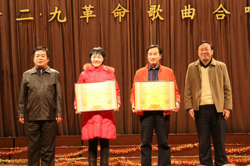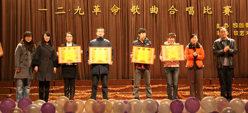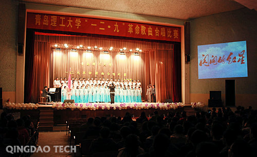 12月7日晚,由校团委主办的纪念“一二·九”学生运动75周年大型合唱比赛在四方校区北院礼堂举行。校党委副书记杨向荣,工会主席李选民,通信学院党总支书记刘金铭,学生处处长沈文青,校团委书记陈伟、副书记王龙等出席并为获奖队伍颁奖,全校千余名师生观看了比赛。