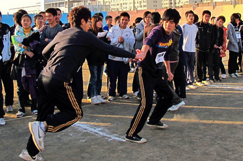 为了纪念“一二·九”学生抗日爱国运动七十五周年,引导在校大学生继承和发扬“一二·九”运动的光荣传统与爱国精神,激发同学们强烈的社会责任感和历史使命感,12月3日下午3时,由体育教学部、校团委主办,自动化工程学院承办的首届万米接力赛在学校大操场拉开帷幕。体育部、团委老师及各学院团总支书记出席此次比赛开幕式。