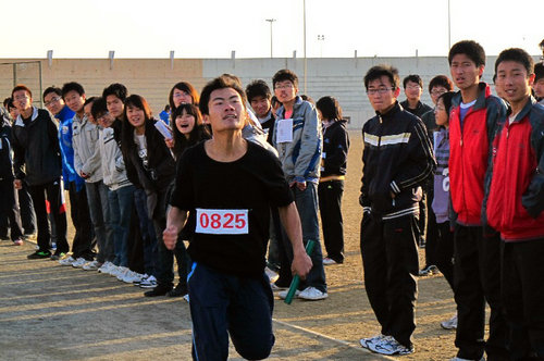 开幕式上体育部张桂青老师及甘露露老师分别发表讲话,并预祝本次比赛圆满成功。团委安晓辉老师宣布开幕。本次比赛每支代表队由10名女生与15名男生组成,要完成25×400米的万米接力赛。尽管操场上寒风凛冽,但各队参赛队员个个激情四射、斗志昂扬,充满了必胜的信心和傲视赛场的豪情。
