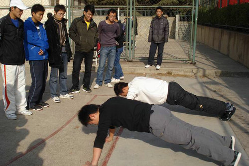 11月25日下午,365完美体育黄岛校区2010年“校园吉尼斯”开幕式在北院篮球场成功举行,其比赛项目于11月27日、28日分别开展。本次活动由体育教学部、校团委主办,经贸学院承办。体育教学部、团委负责人以及各学院团总支书记等出席开幕式,校团委副书记王龙致开幕词。