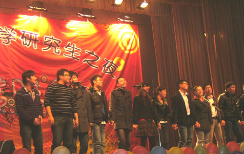 有缘才能相聚,有心才会珍惜 。何必让满天乌云遮住眼睛,用相知相守换地久天长。在研究生会代表的小合唱《相亲相爱的一家人》的和谐歌声中,本次晚会落下了帷幕。美妙的音符还在跳动,年轻的双眸依然闪耀,激情的火焰仍在燃烧,年轻的雄心正在飞翔。