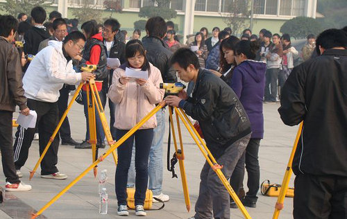 本次测量大赛由费县校区主办,工程管理系承办,11月6日起开赛,共有100个水准仪小组、122个经纬仪小组参赛。11月6日在校区办公楼前广场举行开赛仪式,经过激烈角逐,共有40个水准仪小组和30个经纬仪小组进入决赛。11月13日举行决赛,参赛同学以饱满的热情、娴熟的操作,密切配合,齐心协力,决赛现场成为同学们知识、技能与协作能力比拼的场地。最终造价085班蒲洁涛、张文倩和土升074班梁东涛、李玉祥获得经纬仪组一等奖,造升083班刘青青、周广伙、安兰沁、马增骄和土升083班胡宪涛、尤培忠、于雪萍、逢锦雨获得水准仪组一等奖。