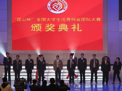 “昆山杯”全国大学生优秀创业团队大赛由教育部、中国教育电视台和昆山市人民政府联合举办,是教育部针对大学生创新创业的首次全国性赛事,旨在进一步培养大学生自主创业的观念与意识,提高大学生创业能力,扶持大学生投身创业实践。在颁奖典礼上,中共中央政治局委员、国务委员刘延东为大赛成功举办发来贺信,教育部党组成员、部长助理林蕙青现场宣读了刘延东的贺信。