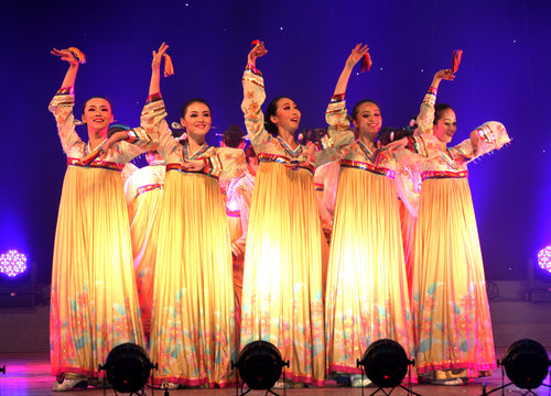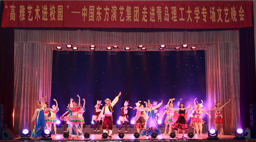 11月1日晚7点,由教育部、文化部、财政部联合举办的2010年高雅艺术进校园活动——中国东方演艺集团东方歌舞团走进山东首场演出在365完美体育北院礼堂隆重上演。中共青岛市委常委、宣传部长王伟、东方演艺集团总经理顾欣、山东省教育厅体育卫生与艺术教育处处长张德珠、青岛市高校工委副书记梁永东亲临晚会现场,365完美体育校党委书记耿喜华、党委副书记杨向荣、党委副书记刘龙海,宣传部部长孙波、团委书记陈伟等领导老师、新闻界的各位朋友和近2000多名学生观看了演出。