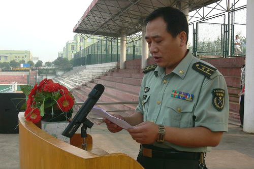 9月12日上午,费县校区在体育场召开2010级新生军训动员大会。费县人民武装部部长刘世宝、副部长魏强、政工科科长刘建国和校长助理、费县校区校长张伟星,费县校区副校长朱卫东、费县校区党委副书记王西长、山东华通路桥工程有限公司副总经理赵常德出席,身着统一军训服装的新生和各班班主任、教官参加,会议由费县校区副校长朱卫东主持。会上,魏强副部长、王西长副书记发表了讲话,刘建国科长宣读了军训安排,教官代表姚付兴、新生代表赵蕾蕾作表态发言。