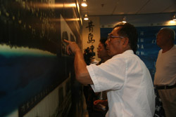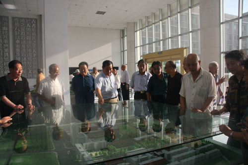 座谈会结束后,老校友们参观了校史馆和校区沙盘。8月9日上午,在校长助理朱申红、黄岛校区办主任齐德义的陪同下,老校友们参观了正在建设中的新校区。