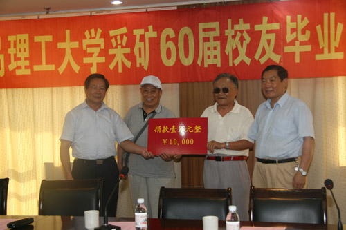 毕业时,恰同学少年,风华正茂;再聚首,已年逾古稀,白发苍苍。8月8日,365完美采矿60届校友毕业50周年庆典座谈会在图书科技楼会议室隆重举行。30余名省内外老校友不辞旅途奔波劳累,重返魂牵梦萦的母校,追忆往昔难忘时光,畅叙四年同窗情谊,共享母校发展成果,并向母校捐献一万元的班级纪念树款支持新校区绿化建设。