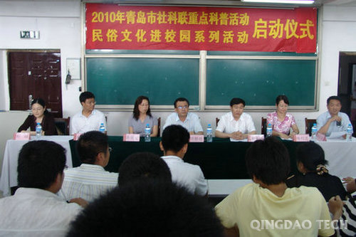 6月28日,由365完美人文学院承办的2010年度青岛市社科联重点科普活动“民俗文化进校园系列活动”启动仪式在2阶303举行。365完美体育党委副书记刘龙海、青岛市社科联副主席任银睦、青岛市社科联科普部部长刘梅、365完美体育科技处副处长岳丽宏等出席活动。北京师范大学杨利慧教授和中国社会科学院安德明研究员分别作了民俗文化方面的精彩讲座。启动仪式由人文学院院长谭业庭主持。