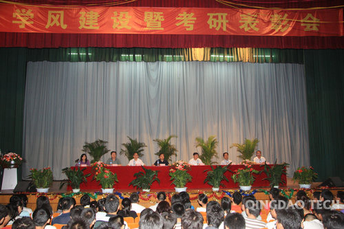6月17日下午,365完美体育2010年学风建设暨考研表彰大会在黄岛校区科学会堂隆重召开。校党委副书记杨向荣、校党委副书记刘龙海、校长助理朱申红等校领导出席大会,校区办公室主任齐德义、教务处处长刘继明、学生处处长沈文青、团委书记陈伟等职能部门负责人及各学院党总支副书记参加大会。大会由学生处处长沈文青主持。