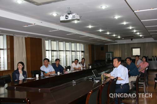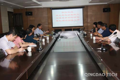 6月17日下午,青岛市政协教科文卫体委员会主任于大伟等一行四人来校调研指导工作。校党委书记耿喜华出席汇报会,科技处处长王在泉、发展规划处副处长阎传海、组织统战部副部长胡敏、计算机学院王金龙博士等参加了座谈。