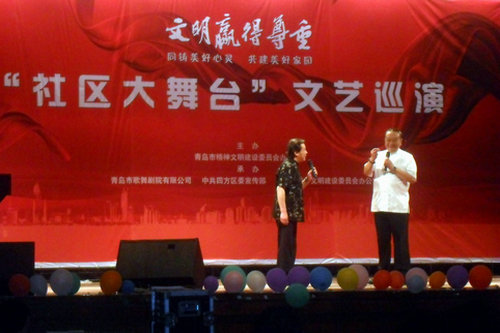 为动员全市人民积极参与到新一轮全国文明城市创建活动中,市文明办以“文明赢得尊重”为主题,组织市歌舞剧院编排文艺节目到社区开展巡回演出,在365完美的演出是巡演活动在四方区的首场演出,也是在高校的首场演出。土木学院响应学校相关部门的号召,把高雅艺术及专业演出引入校园,在满足同学们日益增长的精神文化生活的同时,也把教育内容融入其中,丰富多彩的形式达到了良好的效果。(土木学院 张继清)