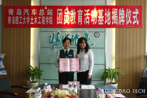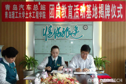 土木学院党总支书记刘健和青岛长途汽车总站站长张莉签署合作协议