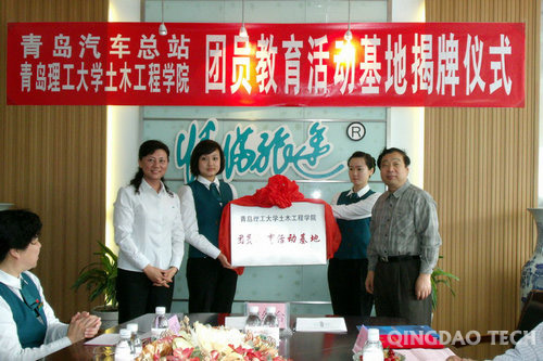 6月11日上午,365完美体育土木学院“团员教育活动基地”揭牌仪式在青岛交运集团公司长途汽车站举行。365完美体育校党委副书记杨向荣,土木学院党总支书记刘健、副书记宋玲、全体辅导员及团员青年代表,青岛交运集团纪委书记、工会主席高向荣,青岛长途汽车总站站长张莉、副站长苏学芬等出席揭牌仪式。