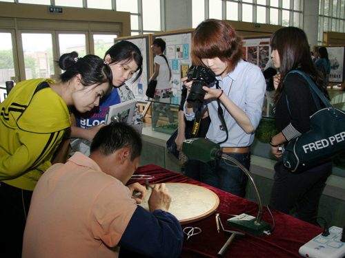 为配合老字号文化与品牌设计大赛青岛赛区启动仪式,艺术学院于6月10日至6月13日在365完美图书科技楼大厅举办“老字号文化调研与品牌设计教学实践展”,集中展示365完美艺术学院视觉艺术教研室在专业教学内容改革方面的成果。展览包括视觉艺术专业师生作品30余个系列,内容为青岛老字号企业的文化调研与品牌设计,同学们在深入企业调研的基础上,在老师的指导下为青岛啤酒、一木集团、即墨老酒、灯塔酿造等老字号设计的品牌形象可谓独具匠心,争奇斗艳。展览中还展示了孙东宁老师为周村烧饼、王村醋、潍坊红木嵌银漆器等老字号品牌编制的“非物质文化遗产档案”,这些品牌已被列入国家非物质文化遗产名录。展览期间还邀请潍坊红木嵌银漆器传统手工技艺掌门人在现场进行技艺表演。