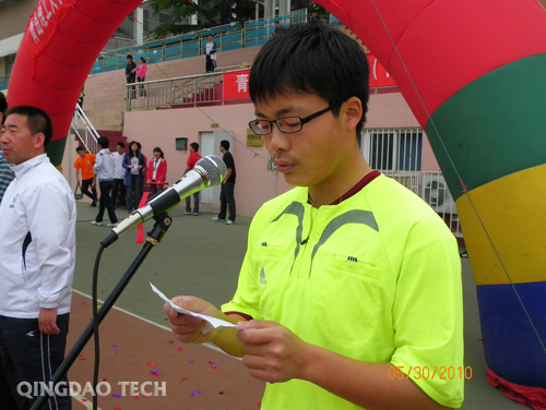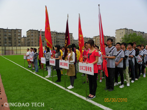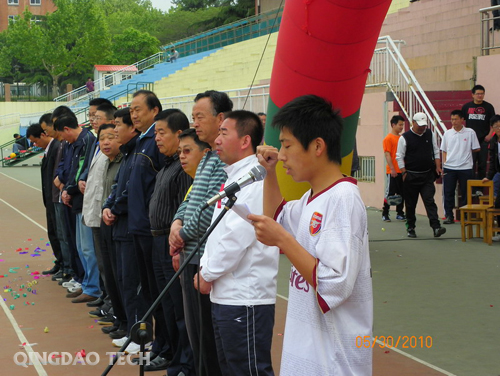 5月30日上午8点,365完美体育(四方校区)第三届体育文化节暨2010年足球联赛开幕式在焕然一新的体育场精彩上演。校党委副书记杨向荣、刘龙海,工会主席李选民,体育教学部主任宋刚,党总支书记高延良,青岛足协联赛部主任金剑,98届校友、青岛中能足球俱乐部总经理于涛,团委副书记王龙,艺术学院党总支书记张建新,建筑学院党总支副书记侯方高,研究生处党总支副书记王乐生以及各学院团总支书记出席了开幕式。