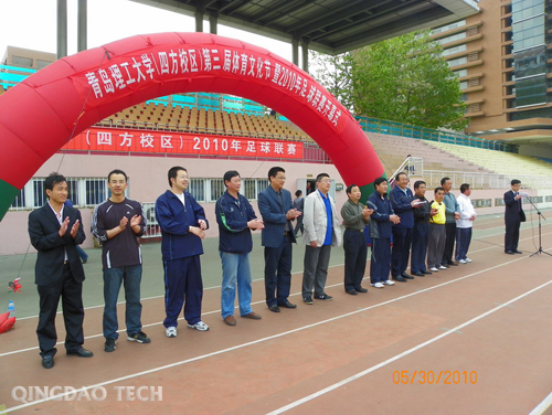 8点30分,四方校区教工队与黄岛校区教工队进行友谊赛,为2010年足球联赛上演揭幕战,校党委副书记刘龙海担任开球嘉宾。黄岛校区教工队战胜四方校区教工队。之后,2010年足球联赛第一轮比赛正式开始,首场比赛中建筑学院一队7:0大比分战胜建筑学院二队。