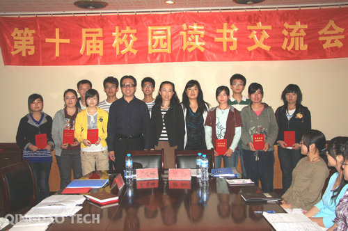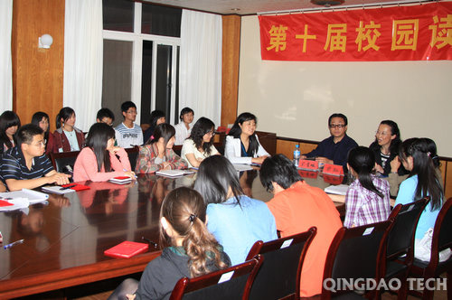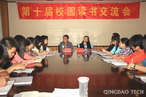 黄岛校区办公室举办的一年一度的读书交流会,秉承着“多读书、读好书、好读书”的原则,遨游书海,切磋思想。此次交流会从寒假起开始着手准备,自3月末到5月初共进行了七次内部交流;从荟萃中华智慧的国学经典到洋溢着异国情调的外国著作,从散发着古典幽香的传世作品到打上时代烙印的现当代佳作,深入探讨了书中蕴含的关于人生、品行、事业、道德和人情感上的哲理,畅谈关于文学艺术的思考。(学生记者 于云龙)