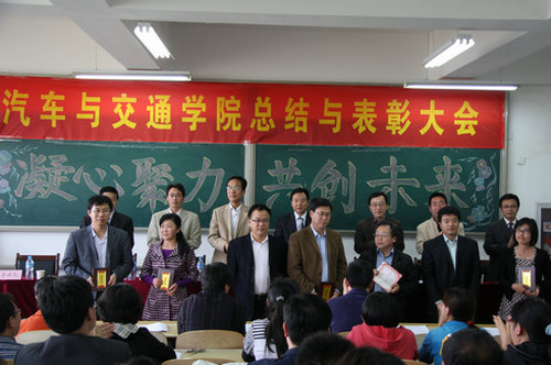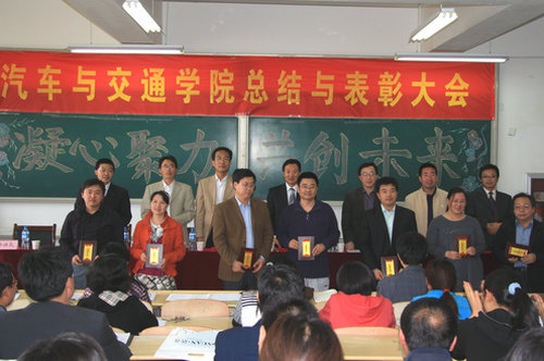 汽车学院党总支书记孙张飞宣读了表彰2005~2009先进集体及先进个人的表彰决定。大会对教学先进、学科建设、学生教育与培养先进个人等17个获奖集体与个人进行了颁奖。