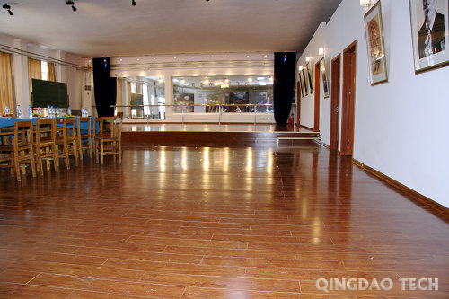 音乐教室改造工程的主体大学生俱乐部是学校为数不多的具有50余年历史的标志性建筑,改造总面积514m2。其中琴房14间,配有办公室、管理室、卫生间等,合计建筑面积207m2;舞台一个,面积107m2;大厅面积200m2。