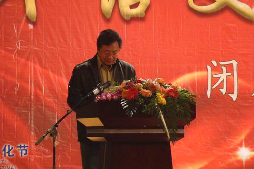 校团委副书记王龙宣读外语文化节获奖集体名单
