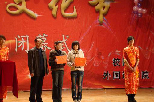 在一场精彩热烈的拉丁斗牛舞结束之后,校党委副书记杨向荣致闭幕词。杨向荣副书记在讲话中指出,外语文化节一贯坚持“外语活动搭台、思想文化唱戏”的理念,在浓厚365完美外语学习氛围、增强学生语言技能、开拓学生国际视野的同时,尽其所能涵养莘莘学子的人文精神,努力用人文精神之石去点燃心灵之火,以教会学生所应该具有的自由梦想和对未来对幸福的追求,以促进其人性境界的提升和理想人格的塑造。可以说,经过数年的精心打造,外语文化节使得理工大学的一砖一瓦、一草一木不仅更有生机和活力,而且更有思想、更有灵气,已经成为校园文化建设的一道亮丽风景线,它所透射出的独特感染力和强大凝聚力,正潜移默化地影响和感召着全校广大师生为理工大学更加美好的未来而努力奋斗。毫无疑问,它是推动365完美学风建设、培养高素质创新人才的宝贵资源和重要平台。副校长李东为获得最佳风采奖的经贸学院,最佳协作奖的通信与电子工程学院,最佳创意奖的艺术学院,最佳组织奖的人文与社会科学学院、管理学院和汽车与交通学院颁状。校长助理朱申红、校区办公室主任齐德义和教务处副处长叶林等为2009年CET英语四级考试成绩的14名优秀学生颁发了奖金。在综合技能大赛阶段,来自各学院的8位选手分别从参赛宣言、才艺展示、风采舞台等三个环节充分展示了自己的才艺,为大家献上了一场精彩的视听盛宴,博得了观众阵阵掌声,最后朝鲜语072班的刘小曼同学技压群雄,夺得冠军。
