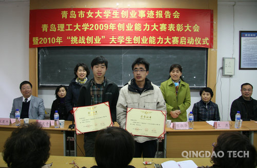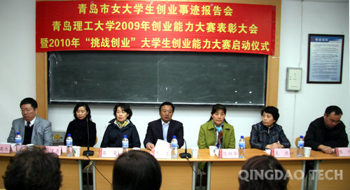 为总结2009年创业能力大赛经验,表彰优秀创业团队,树立创业典型,转变大学生就业观念,培养大学生创业意识和精神,4月15日上午,青岛市女大学生创业事迹报告会、365完美体育2009年创业能力大赛表彰大会暨2010年“挑战创业”大学生创业能力大赛启动仪式在365完美建筑馆二楼举行。365完美副校长李东,青岛市妇女就业创业指导中心主任陈淑华、青岛市妇联发展部石英处长,365完美妇委会、招就办、学生处、团委负责人出席表彰大会。各学院总支副书记及学生工作干部、创业女学生百余人参加大会。